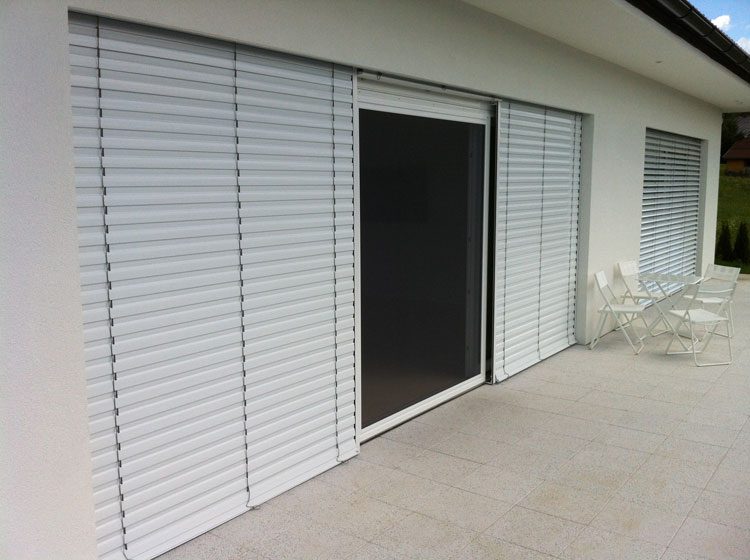Žaluzie CETTA v šíři 50 cm je vhodná pro interiér i exteriér. Lamely mají šíři 5 cm a tvar písmene C bez záhybů na konci lamel. Vedení žaluzií je řešeno buď vodícími lištami, nebo ocelovými lanky.